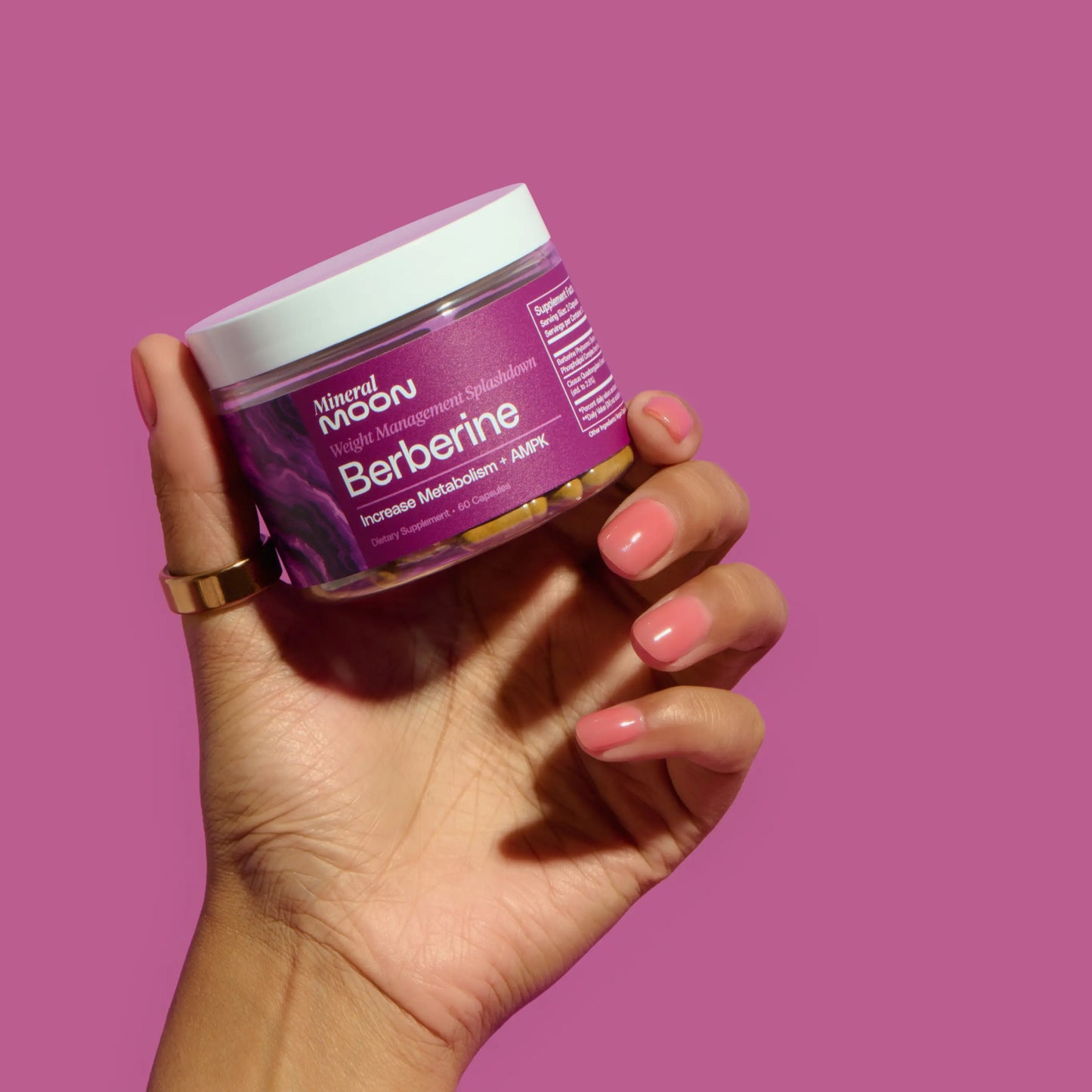 Say hello to Mineral Moon's Berberine boosted with Cissus Quadrangularis. Formulated with your body in mind, our Berberine Phytosome naturally activates AMPK (Adenosine Monophosphate-activated Protein Kinase), which is a key energy-regulating enzyme, to support your metabolic health. Combined with CQR-300®, a premium Cissus Quadrangularis extract to impact GLP-1 which helps manage appetite, our Berberine supports healthy weight management, metabolism and blood sugar levels.