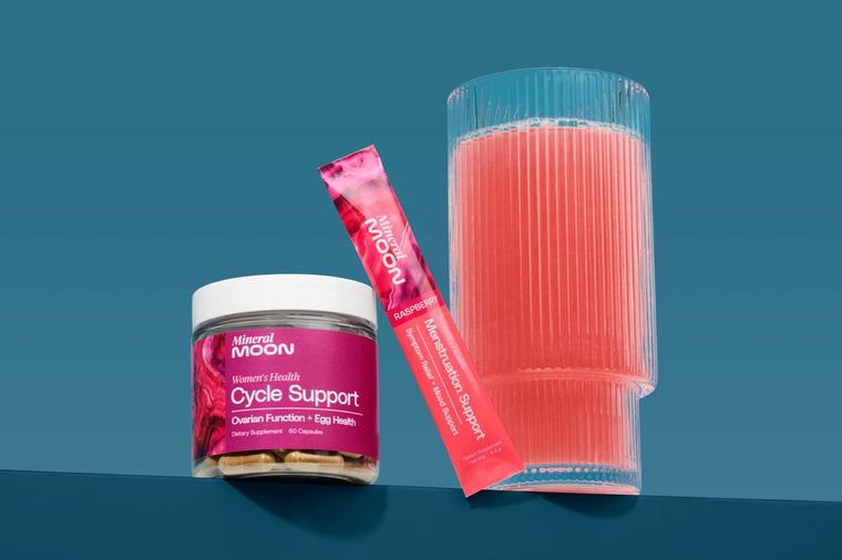 Meet your new monthly must-have. The Complete Cycle Care Duo pairs Cycle Support, our pharmacist-formulated daily supplement for ovarian health and fertility, with Menstruation Support, a refreshing raspberry drink that eases cramps and other common PMS symptoms. Together, they deliver science-backed support before, during, and after your period—helping you feel balanced, energized, and in control all month long.