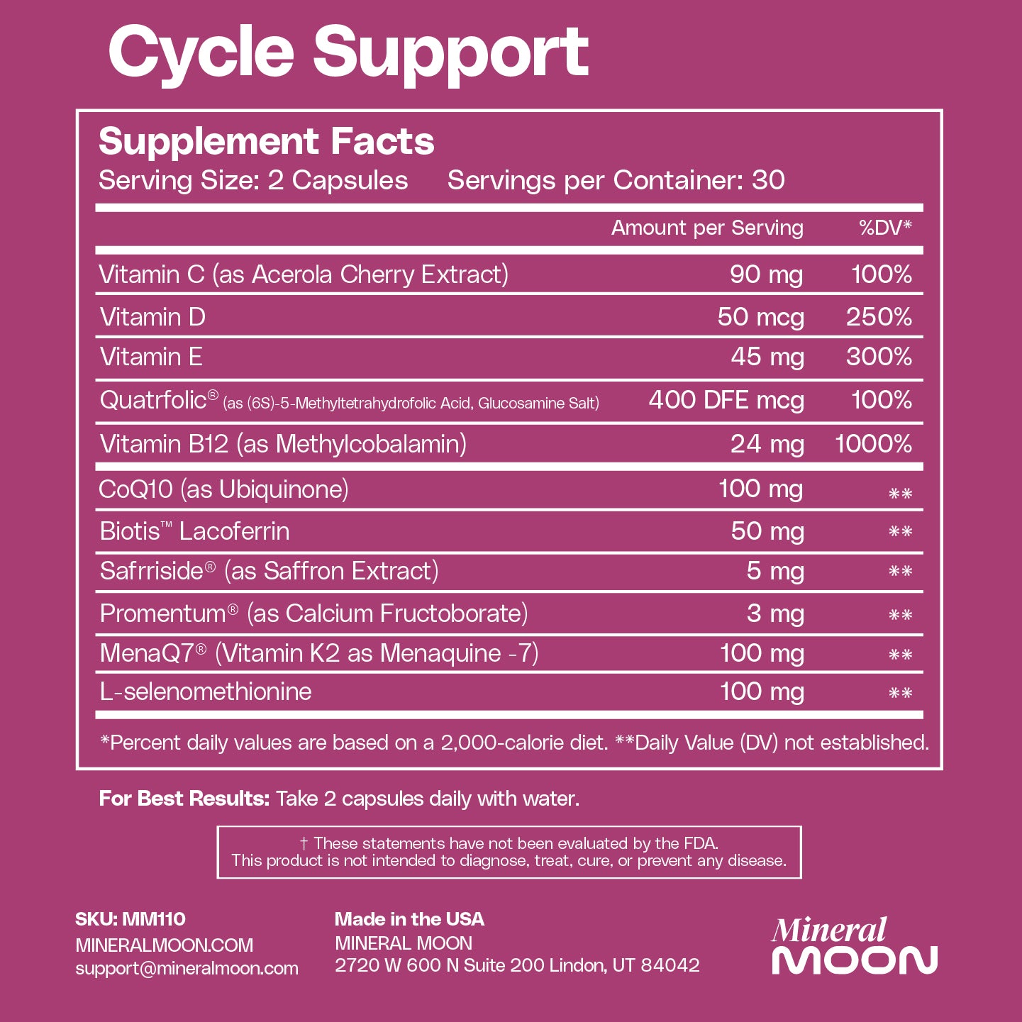 Cycle Support is generally safe to combine with most supplements. If you’re taking prescription medications or fertility treatments, we recommend consulting your healthcare provider before starting.